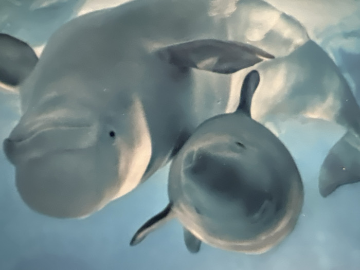 - "two beluga whales swimming in a blue-toned environment, possibly water" by FM-4wlJY2, licensed under CC BY 4.0