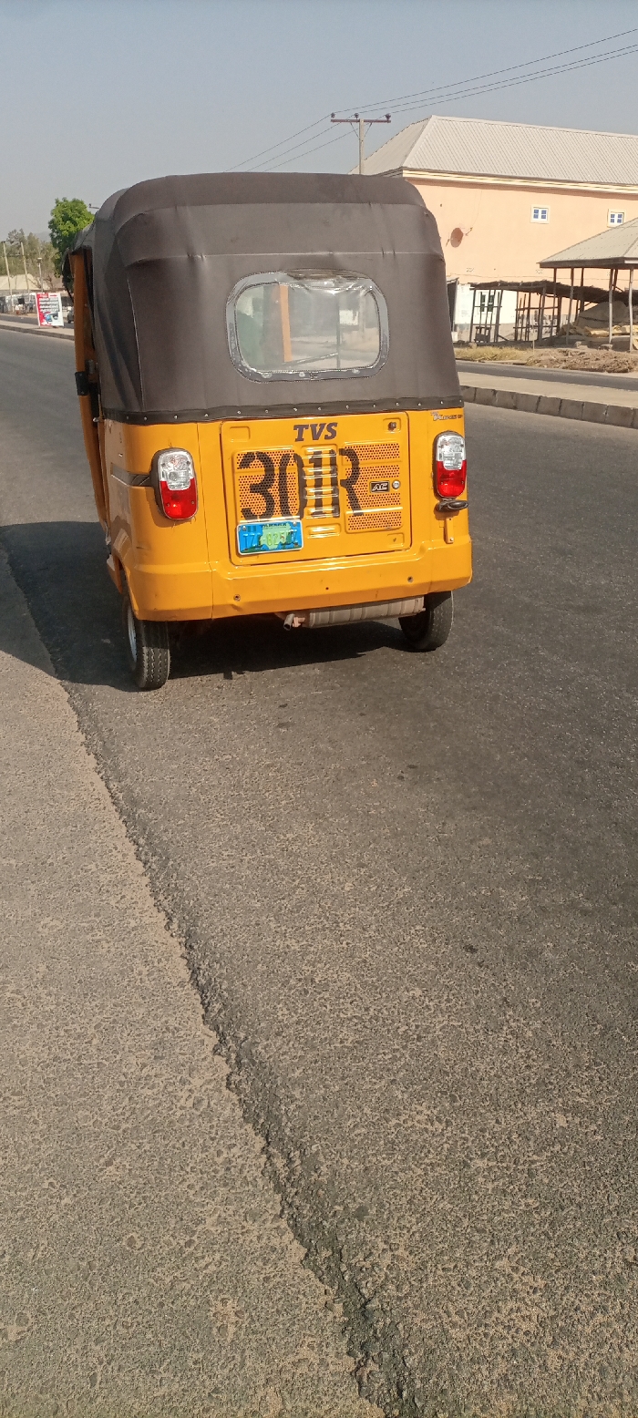 - "An upward-angled, daytime photograph captures the rear of a yellow TVS King tricycle, commonly known as a Keke NAPEP, on an asphalt road in Jalingo, Taraba State, Nigeria" by FM-PJyUA2, licensed under CC BY 4.0