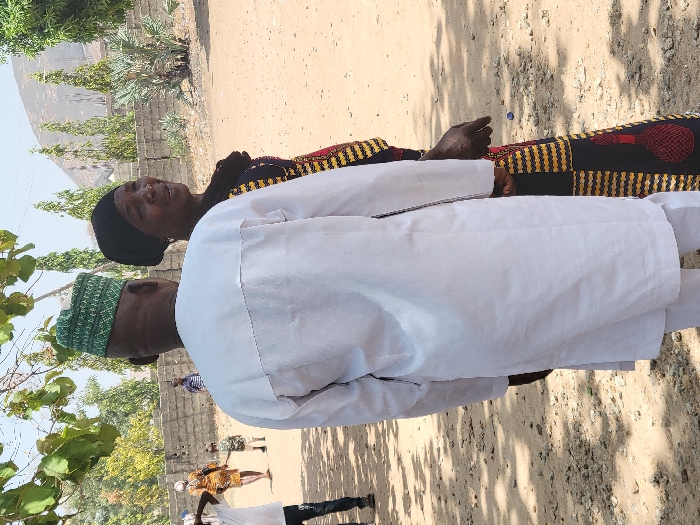 An outdoor scene in Suleja, Nigeria, features multiple individuals on dry, light brown ground under bright sunlight
