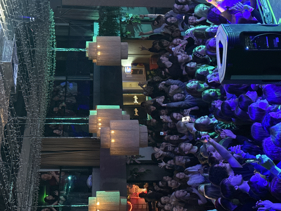 The image portrays an interior scene from a crowded event at Jungle Bar, located at Ulitsa Yuzhnoye Shosse, 36, Tolyatti, Samara Oblast, Russia