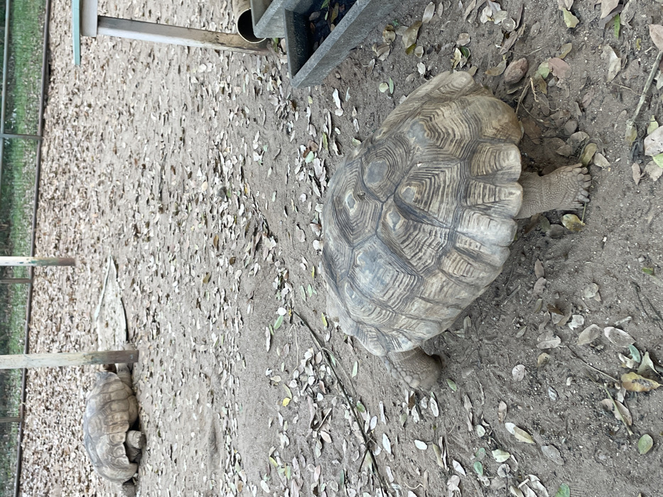 - "The image displays an outdoor enclosure in Abuja, Nigeria, containing two large African Spurred Tortoises (Geochelone sulcata)" by FM-Qymot1, licensed under CC BY 4.0