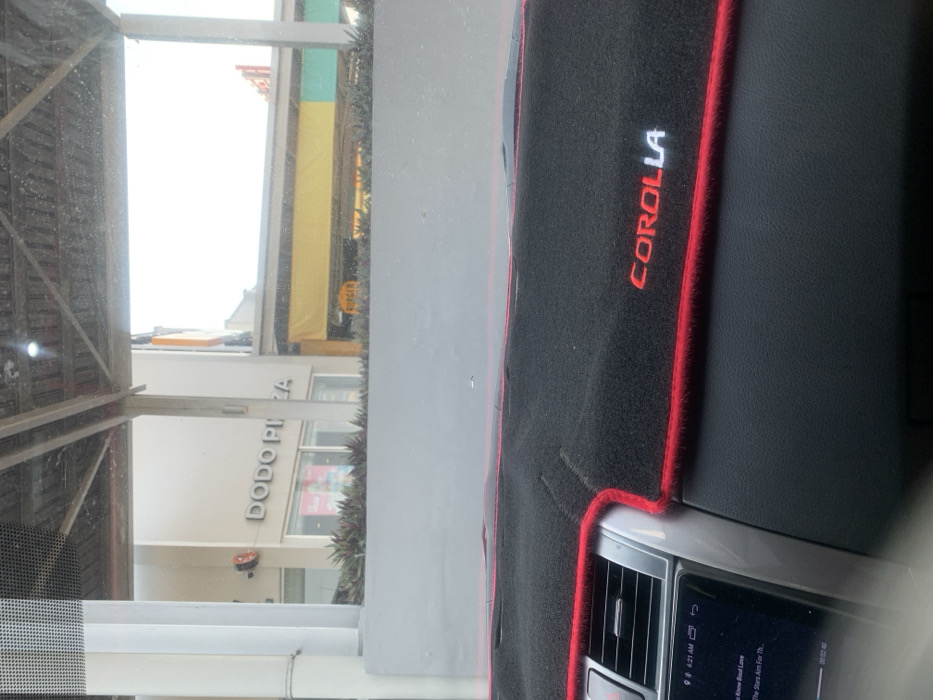 - "The image captures an outdoor scene from the interior of a vehicle, specifically from the dashboard featuring a black mat with red trim and the embroidered word "COROLLA" by FM-C0qMj2, licensed under CC BY 4.0