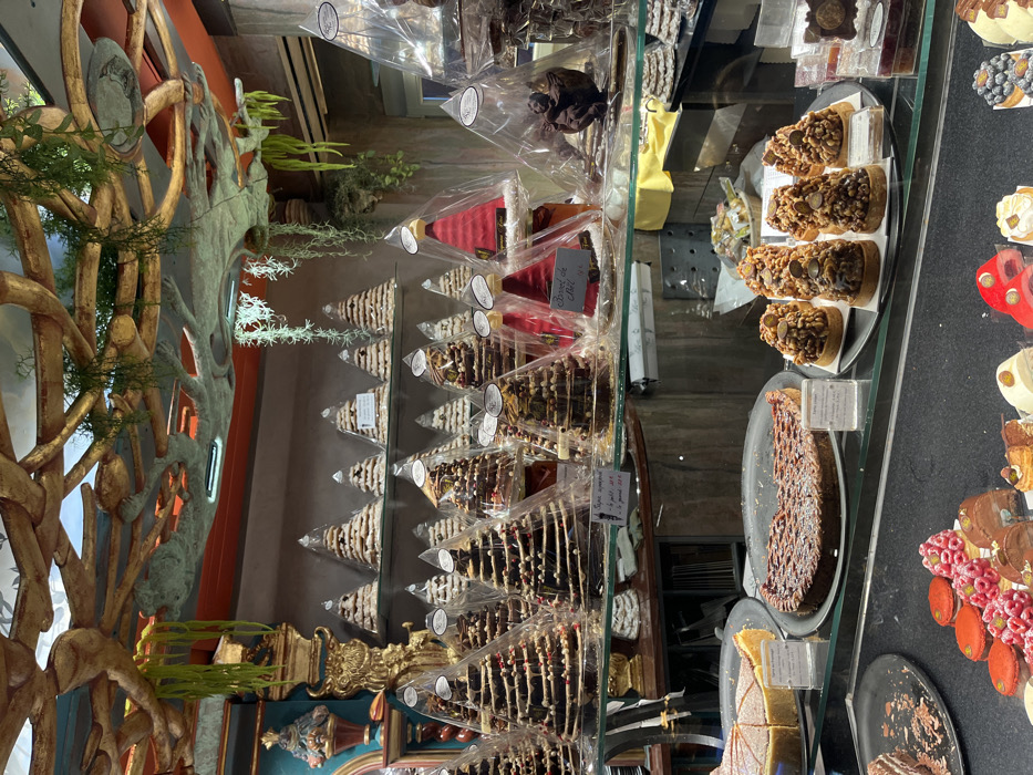 The image depicts the interior of a patisserie, specifically Pâtisserie Tonio in Sélestat, France
