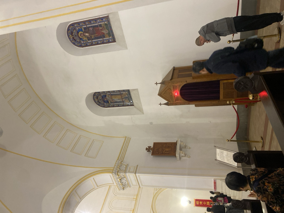 interior of a church in Qingdao Shi, China, located at the coordinates (latitude: 36
