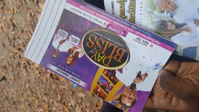 - "A dark-skinned hand holds a Christ Embassy flyer titled "DAY of BLISS - A PRAYER & MIRACLE CRUSADE" by FM-kuE8L2, licensed under CC BY 4.0