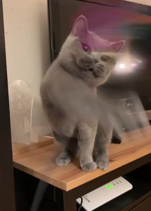 - "A short video depicts a gray cat standing on a wooden table, playfully batting at a toy attached to a black cord" by FM-sL8Ne2, licensed under CC BY 4.0