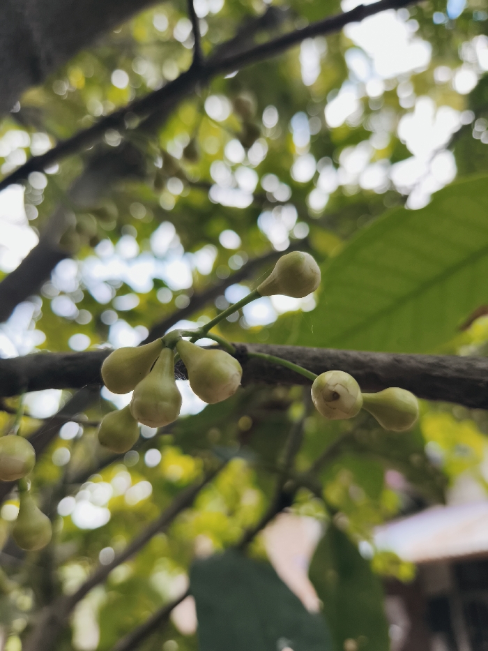 - "The scene depicts a close-up of light green, teardrop-shaped fruit buds, likely water apple buds, clustered on a thin, dark branch" by FM-RPcK62, licensed under CC BY 4.0