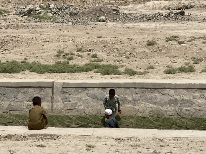 - "The image captures an outdoor scene in Gundigan Village, Afghanistan, featuring three young males near a man-made channel under bright daylight" by FM-B5wmg2, licensed under CC BY 4.0