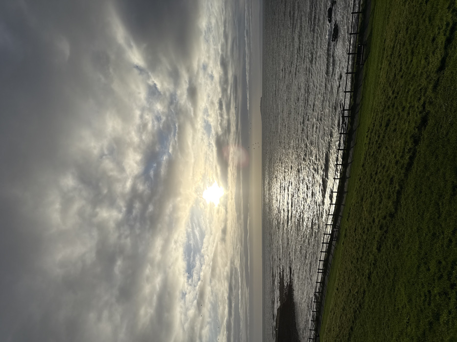 - "The image presents a coastal landscape in Crail, United Kingdom, under an overcast sky with the sun low on the horizon, creating a strong glare and direct reflection across the water" by FM-AbrGp2, licensed under CC BY 4.0