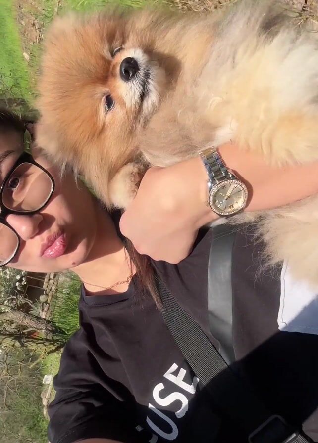 - "person holding a small, tan Pomeranian dog close to their face in an outdoor setting" by FM-uJMVB3, licensed under CC BY 4.0