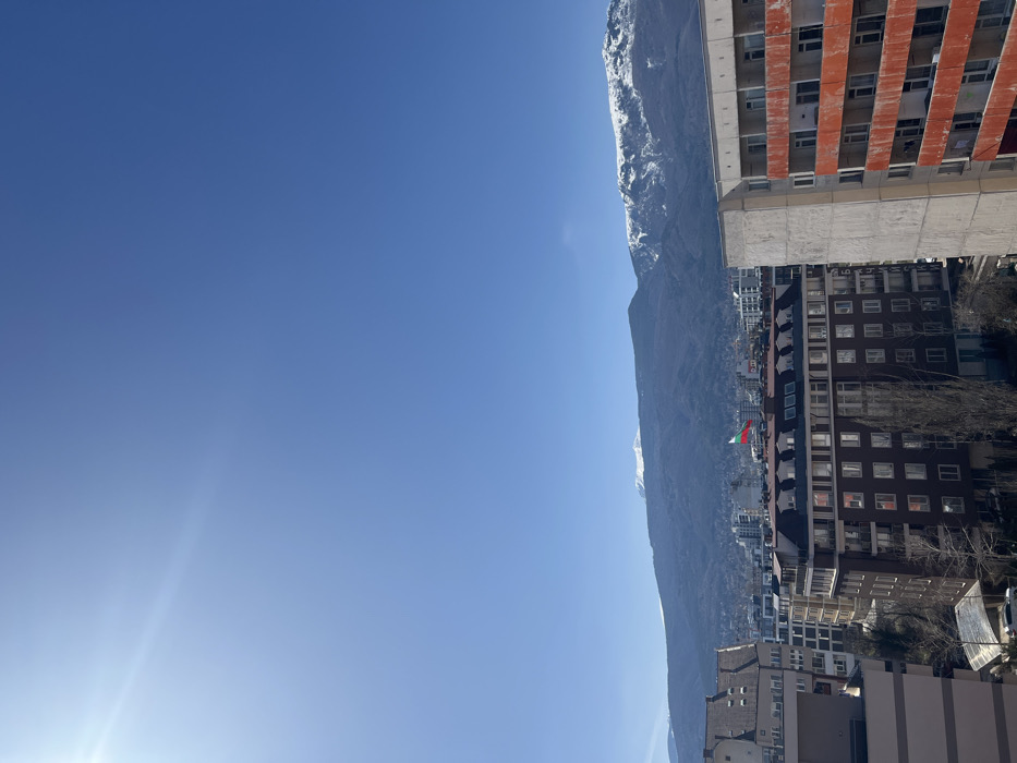 - "An elevated, distant view captures a portion of Sofia, Bulgaria, under a clear, bright blue sky with a prominent sun flare in the upper left" by FM-grFFI2, licensed under CC BY 4.0