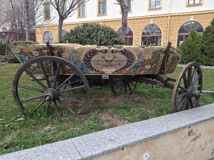 - "The image depicts an elaborately painted ornamental wooden cart situated on a grass lawn in Sliven, Bulgaria" by FM-OiT0x1, licensed under CC BY 4.0