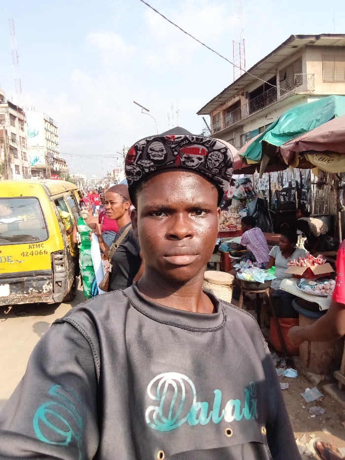 - "A young man wearing a skull-patterned cap and black t-shirt with "Dalali" printed on it stands in a bustling outdoor market" by FM-mFVo23, licensed under CC BY 4.0