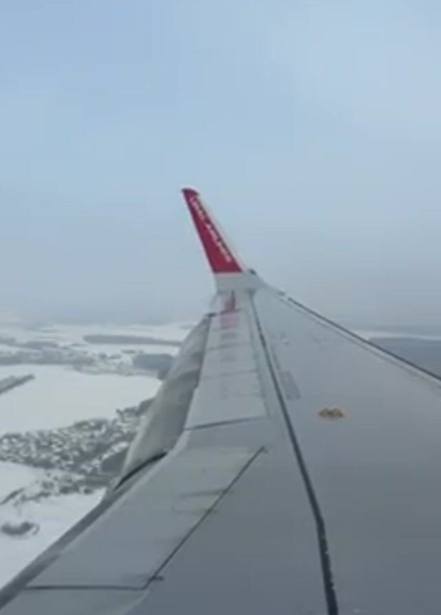 The video displays a view from the window of an Ural Airlines airplane, focusing on the wing