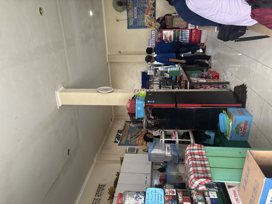 - "The image depicts the interior of a brightly lit canteen or eatery, likely located in Surabaya, Indonesia, specifically indicated by a blue banner on the right advertising "Kantin PN S" by FM-pZJkE3, licensed under CC BY 4.0