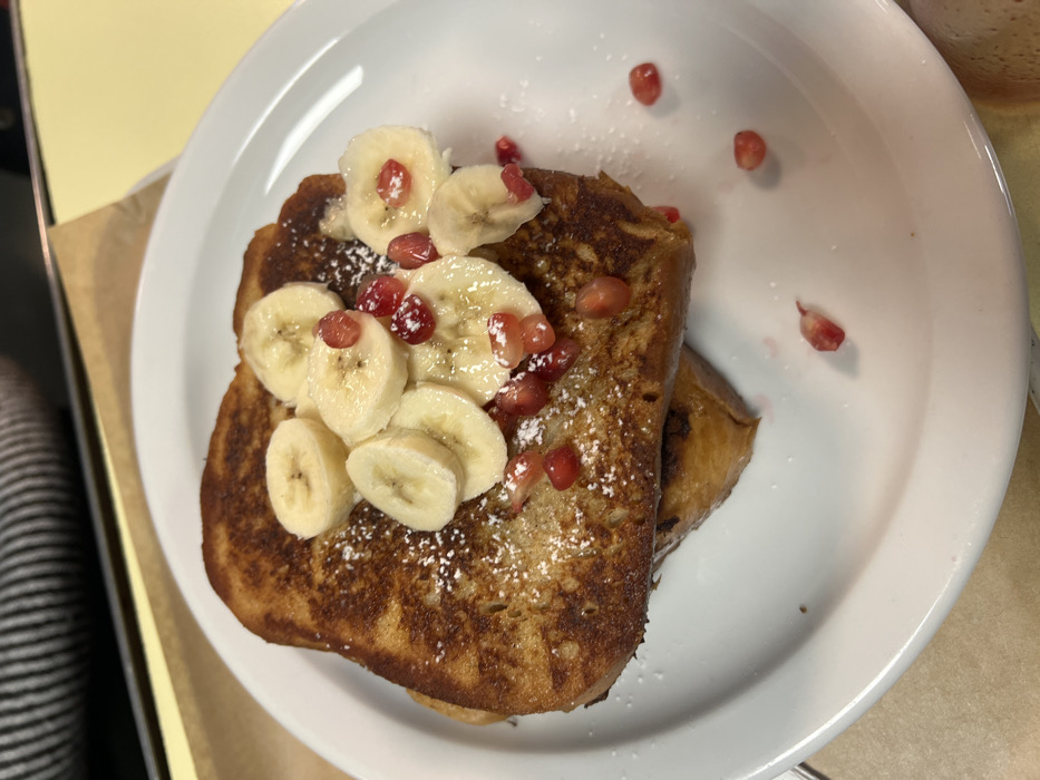 - "The image depicts two slices of French toast, stacked on a white, round ceramic plate, in an indoor dining setting in Paris, France" by FM-P69hQ2, licensed under CC BY 4.0