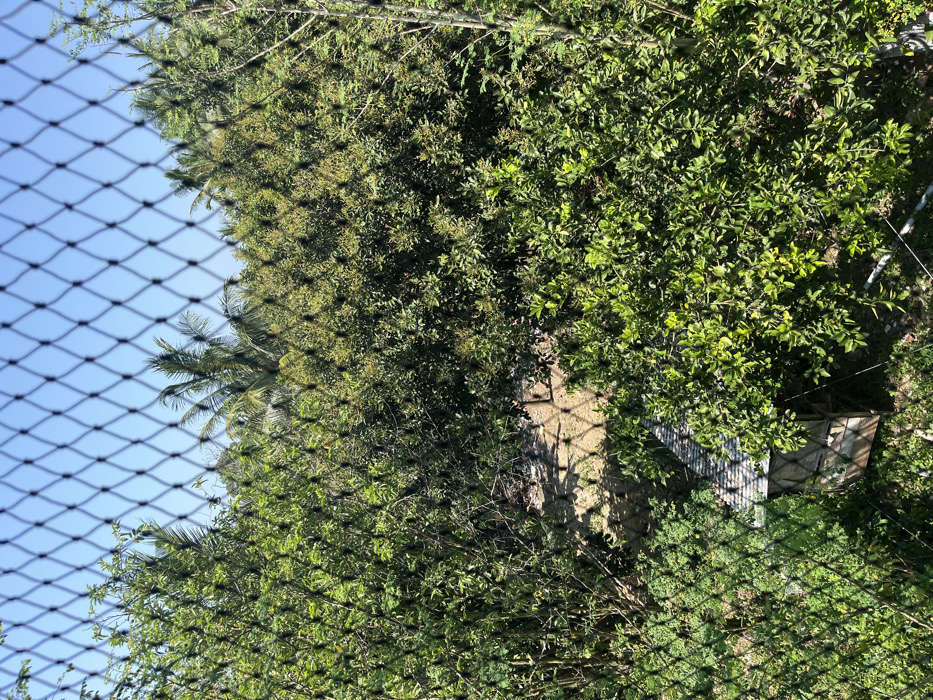- "The image depicts an exterior view through a black, diamond-patterned mesh net, presenting a densely vegetated landscape under a clear blue sky in the city of Pulorayeuk, Indonesia" by FM-ptDWd2, licensed under CC BY 4.0