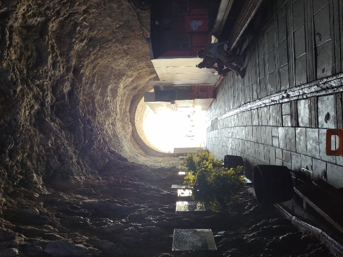 - "An arch-shaped rock tunnel, likely part of the Rosh HaNikra Grottoes in the Mate Asher Regional Council, Israel, extends towards a bright, distant exit" by FM-3Ip2o1, licensed under CC BY 4.0