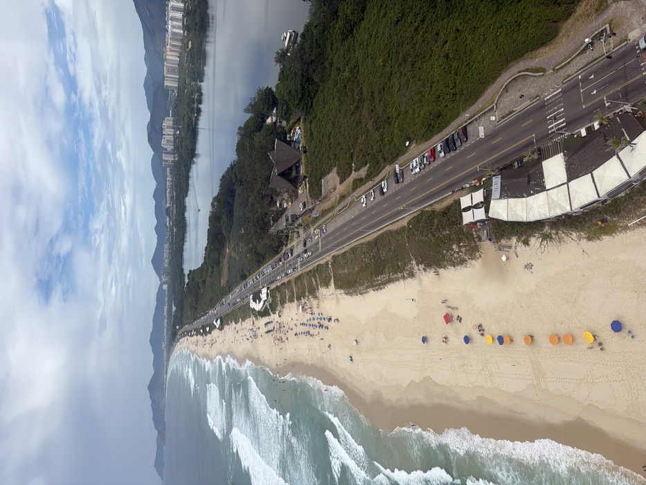 - "An aerial image captures a long, sandy beach, a coastal road, and an inland lagoon, indicative of the Barra da Tijuca or Recreio dos Bandeirantes areas in Rio de Janeiro, Brazil" by FM-z2WOI2, licensed under CC BY 4.0
