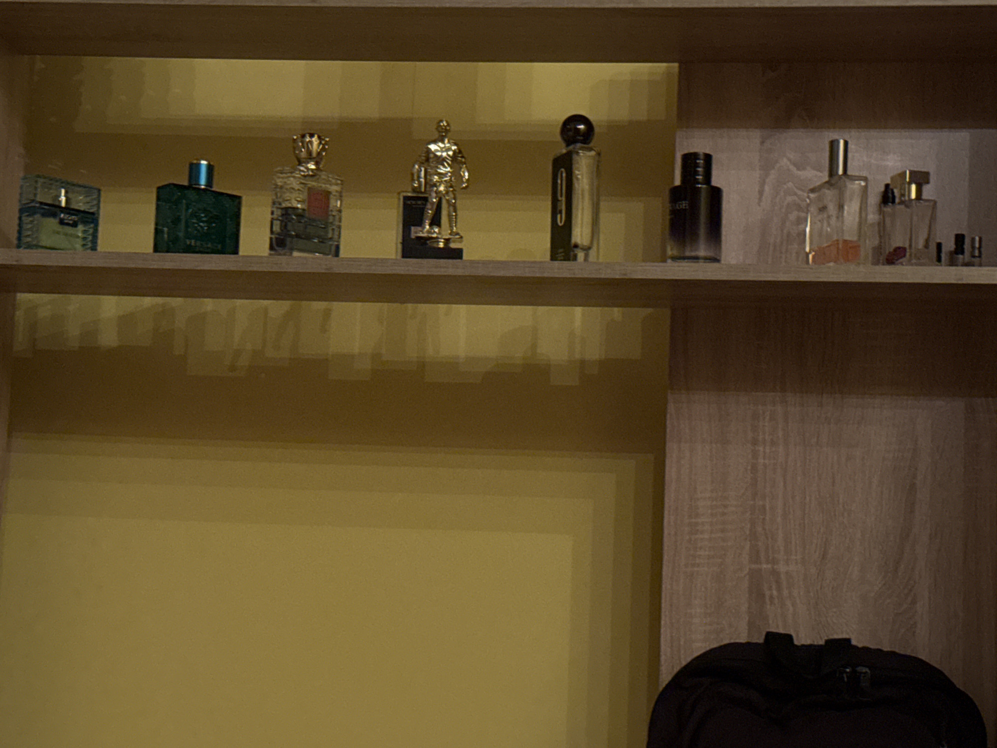 - "A photograph shows a shelf with several perfume bottles and a statue" by FM-Q6Uxt1, licensed under CC BY 4.0