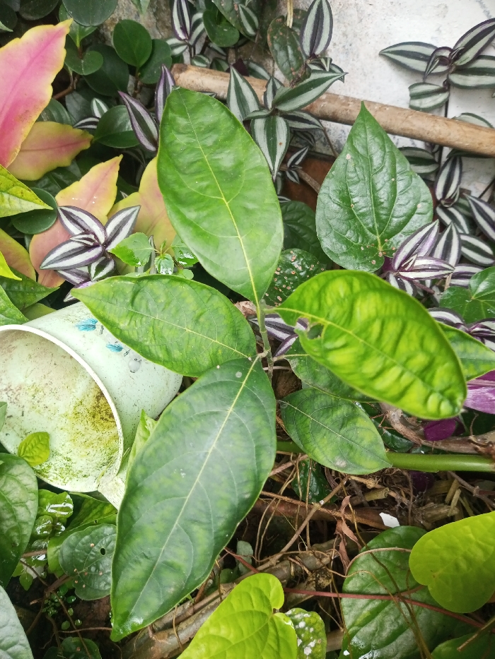 - "The image displays a close-up, downward-angled view of dense plant foliage and ground cover in an outdoor setting within Khammam, India" by FM-aMjHv1, licensed under CC BY 4.0