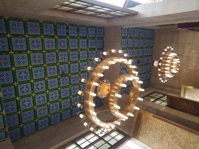 - "The image displays the interior of a building, likely a mosque, situated in Jiulongpo District, China, viewed from a low-angle looking upwards" by FM-lucmD2, licensed under CC BY 4.0