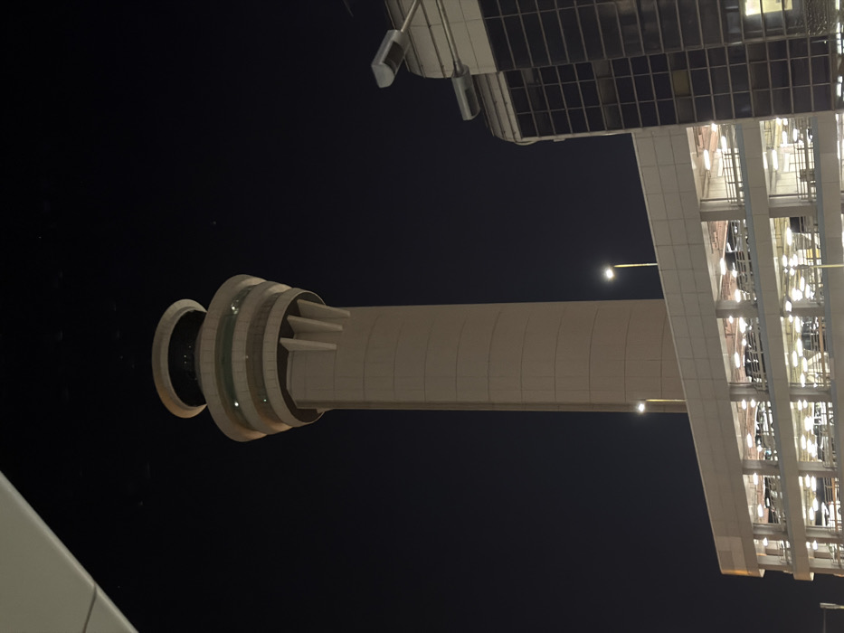 - "A cylindrical tower with stacked, illuminated rings at its peak stands against a dark night sky" by FM-qanlk2, licensed under CC BY 4.0