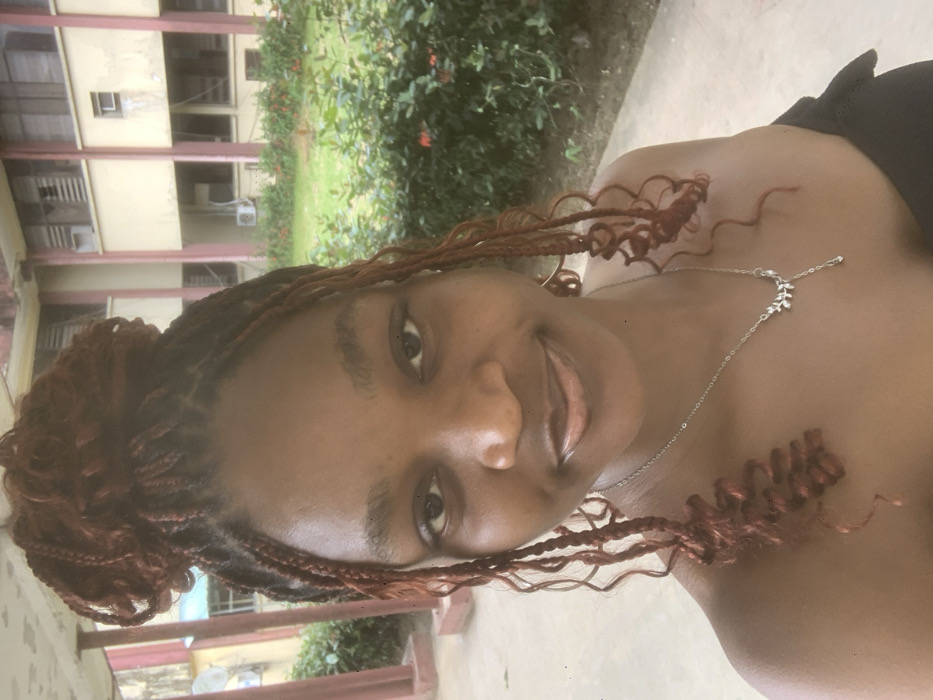 A young adult female is depicted in an outdoor setting within Calabar, Nigeria