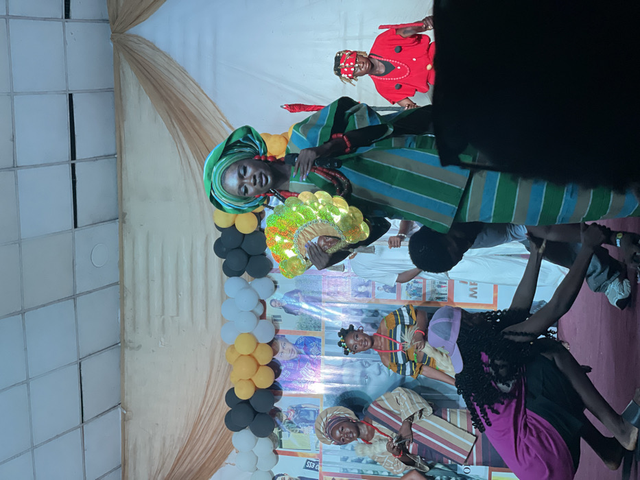 The image depicts an indoor cultural performance or event occurring on a stage in Lokoja, Nigeria