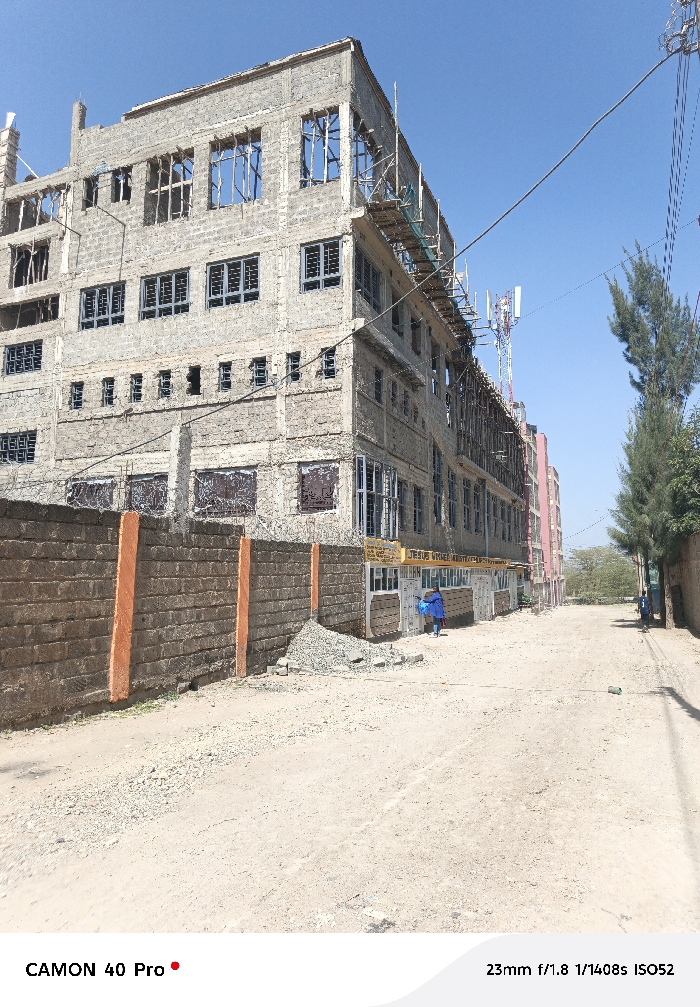 The image depicts a multi-story building, appearing to be five to six floors high, constructed from concrete blocks in Oloosirkon/Sholinke ward, Kenya