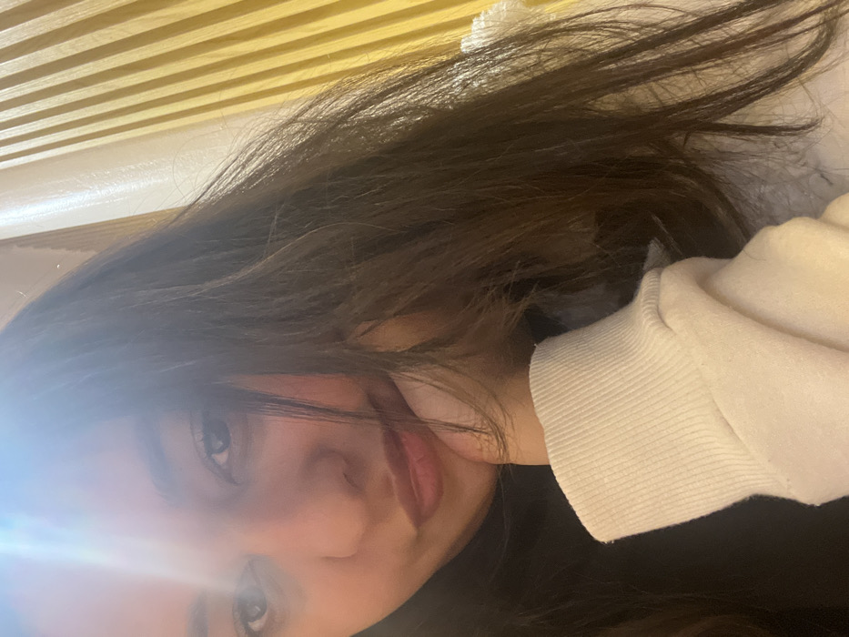 - "A close-up, chest-up indoor portrait depicts a female subject with long, dark brown hair and a medium skin tone" by FM-l265B2, licensed under CC BY 4.0