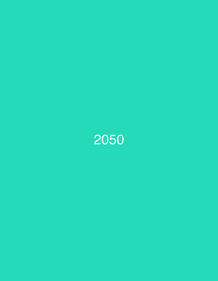 A solid, vibrant teal background fills the frame. Centered horizontally and vertically is the number "2050" in a simple, sans-serif white font. The number is relatively small compared to the overall image size, creating a minimalist aesthetic. The flat color and clean typography give the image a modern feel.