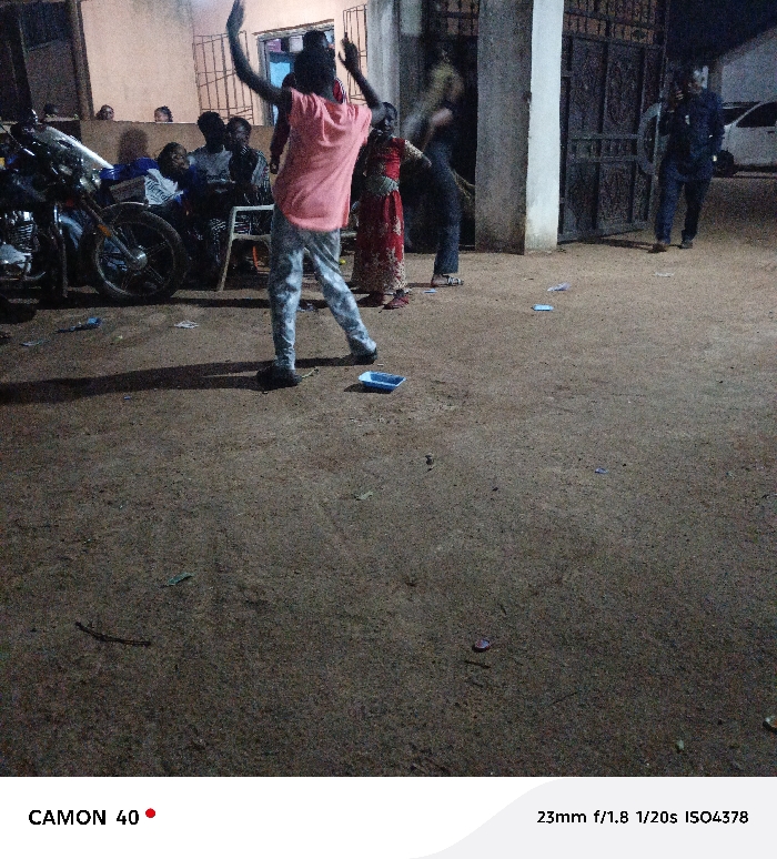 The image captures an outdoor evening scene in Egede, Nigeria, illuminated by artificial light