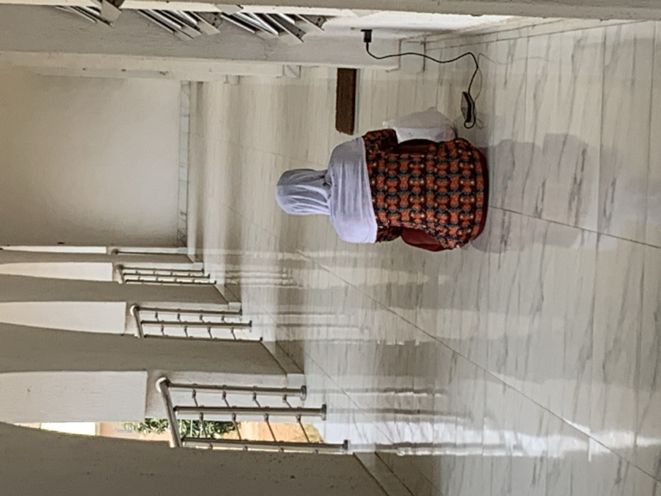 In Badi, Nigeria, a lone individual is observed from behind, seated on a highly reflective, light-colored tiled floor within a long corridor