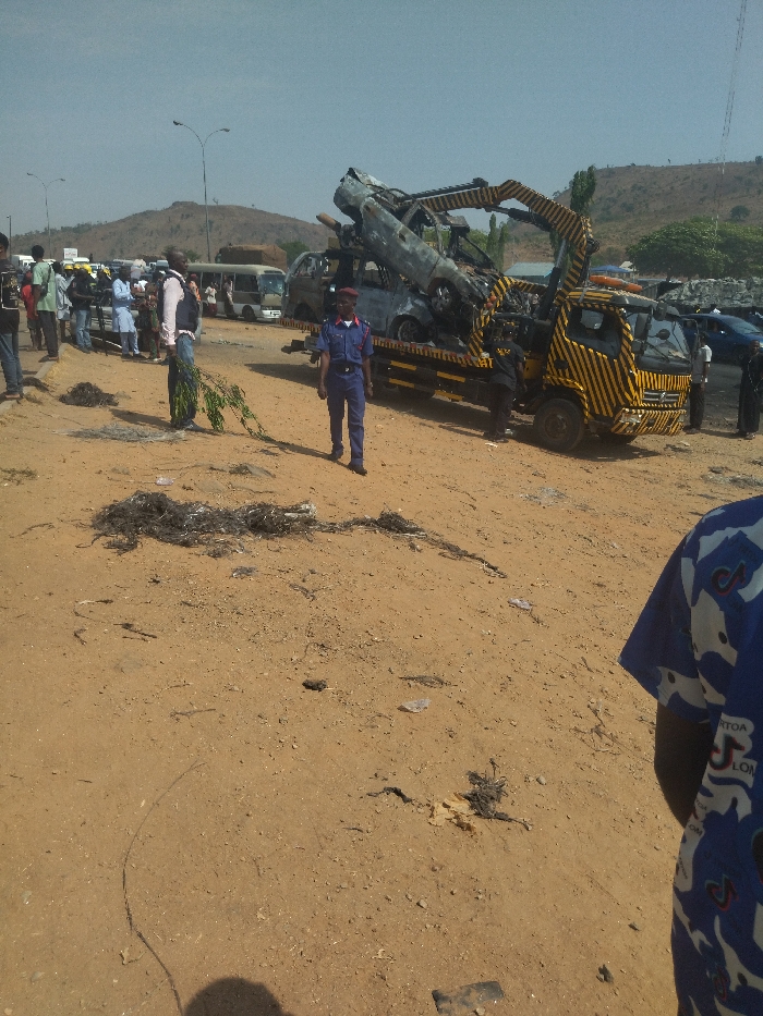 The scene is a roadside in New Karu, Nigeria, at the coordinates 9