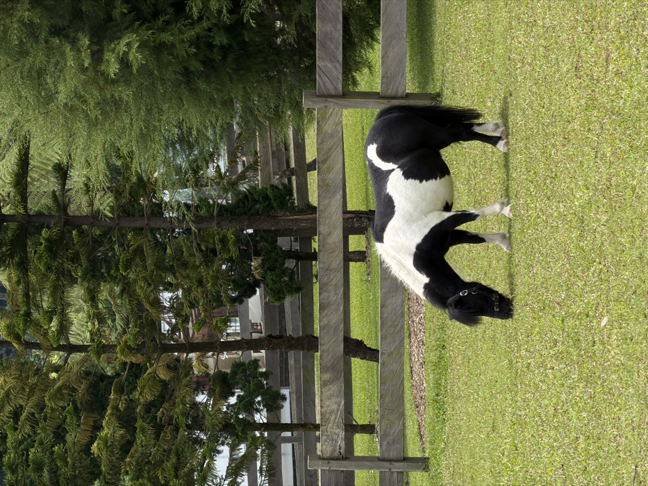 - "A black and white pony stands on green grass next to a wooden fence" by FM-ytW0x1, licensed under CC BY 4.0