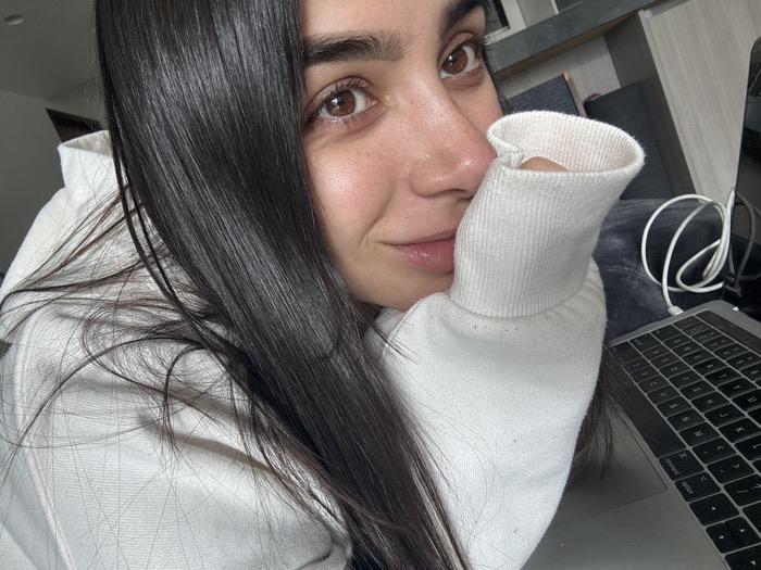 - "A close-up photograph depicts a young adult female indoors, in what appears to be a residential environment in Mexico City, Mexico" by FM-rnhVl2, licensed under CC BY 4.0