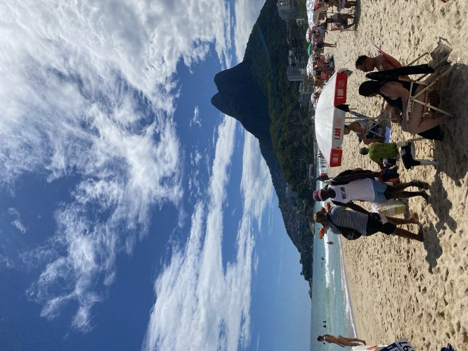 - "A sunny beach scene features a crowded shoreline with beachgoers, umbrellas, and chairs" by FM-Mwrr72, licensed under CC BY 4.0