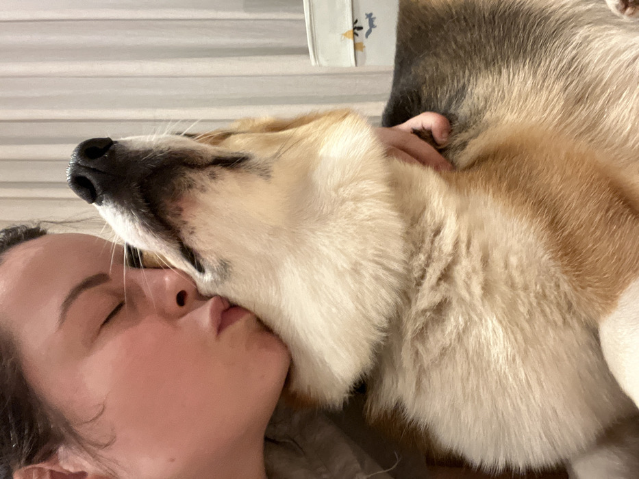 - "A woman with closed eyes leans in to kiss a dog" by FM-4GKkh1, licensed under CC BY 4.0