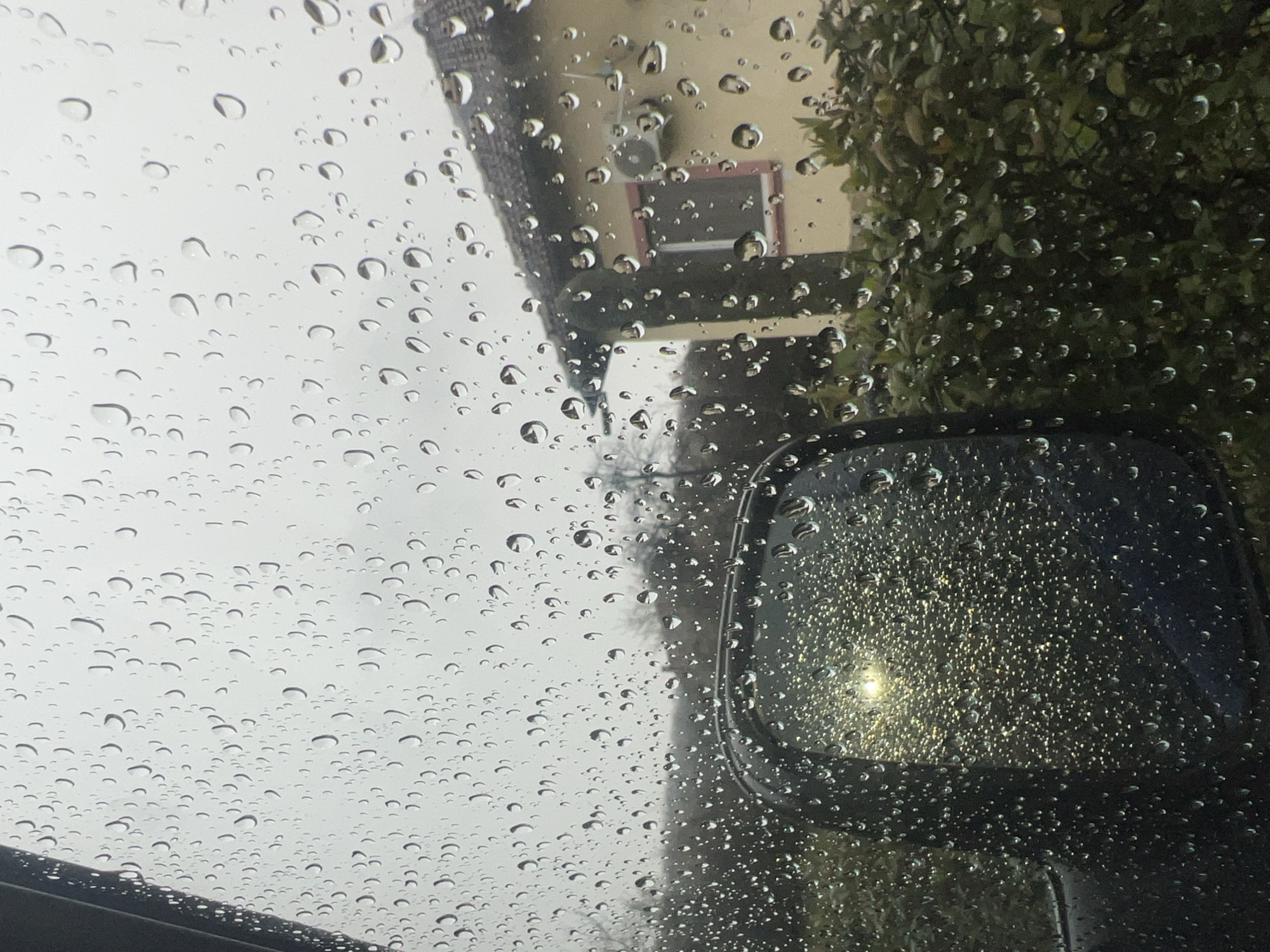 view through a rain-streaked windshield