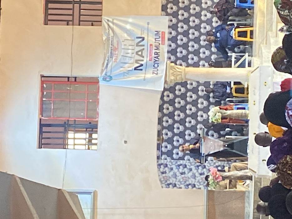 This image depicts an indoor gathering in Akwanga, Nigeria