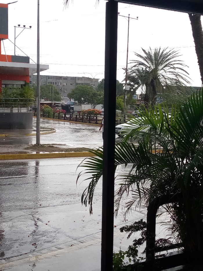 - "The image depicts an overcast and rainy urban street scene in Porlamar, Venezuela, viewed through a dark vertical frame from what appears to be an interior or sheltered vantage point" by FM-Q5qB73, licensed under CC BY 4.0