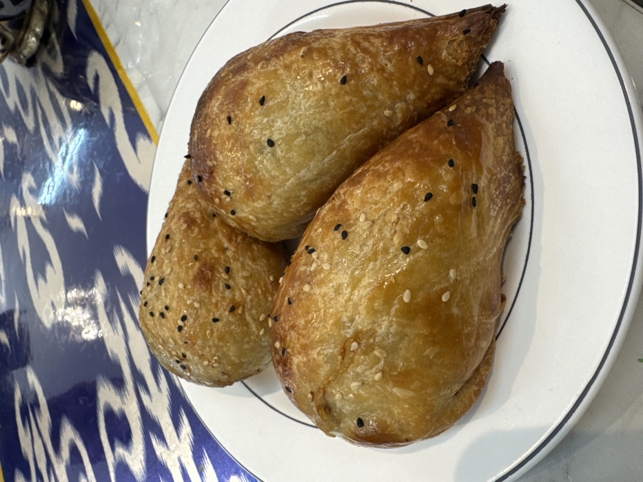 - "Three samsas are arranged on a white plate with a black rim" by FM-UWeH83, licensed under CC BY 4.0