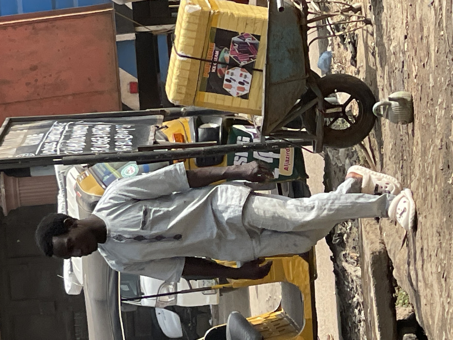 - "An adult male with dark skin and short dark hair is depicted walking right-to-left across an unpaved, dusty ground surface in Zaria, Nigeria" by FM-vijg43, licensed under CC BY 4.0