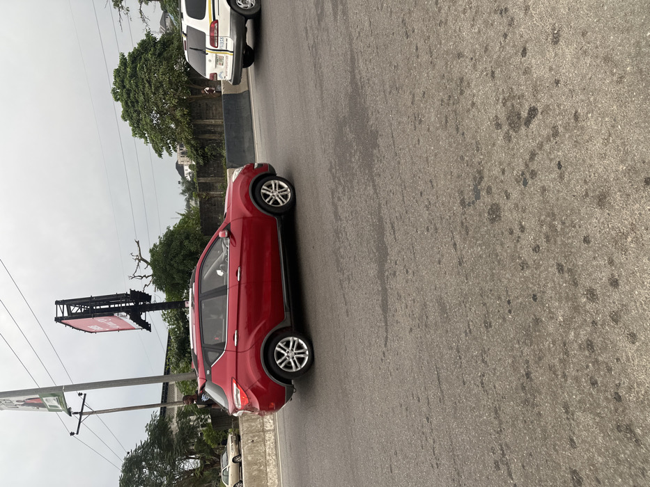 - "A red SUV is parked on the side of a wet, gray asphalt road next to a concrete curb" by FM-IV6mt2, licensed under CC BY 4.0