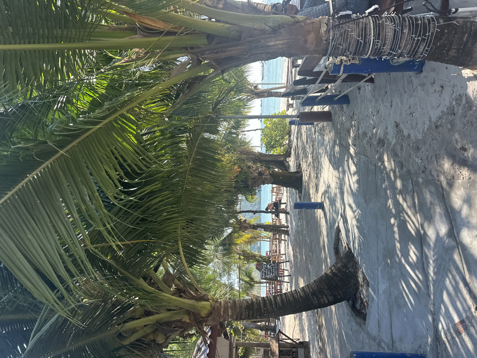 - "A sunny beach scene shows palm trees framing a view of the ocean" by FM-S4vcm1, licensed under CC BY 4.0