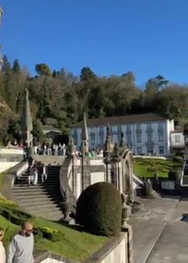 wide view of Bom Jesus do Monte in Braga, Portugal, under a clear blue sky