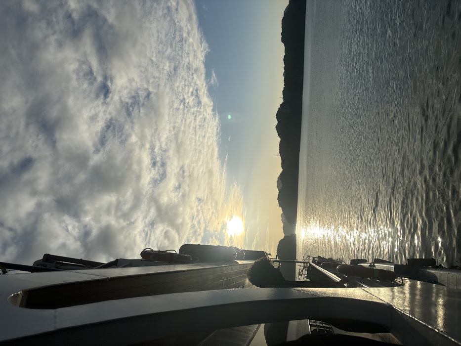 - "The image captures a maritime scene from the port side of a vessel, depicting a wide expanse of water and a horizon populated by numerous silhouetted landmasses, characteristic of limestone karsts" by FM-bmo3E3, licensed under CC BY 4.0