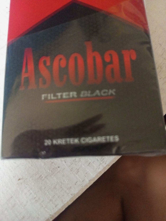 - "A pack of "Ascobar FILTER BLACK" cigarettes is shown" by FM-JIlGY2, licensed under CC BY 4.0