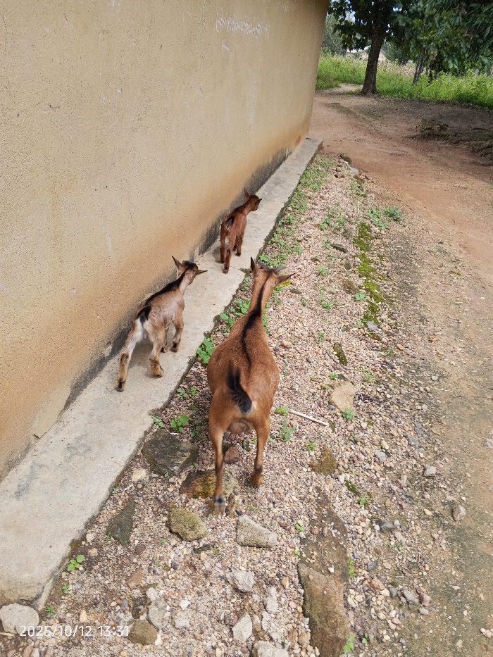 - "The image, captured in Kamantan, Nigeria, displays three goats walking in single file along a concrete strip" by FM-dDsul2, licensed under CC BY 4.0